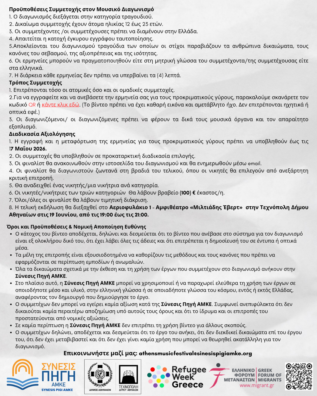 - Performances can be in the participant’s native language or in Greek