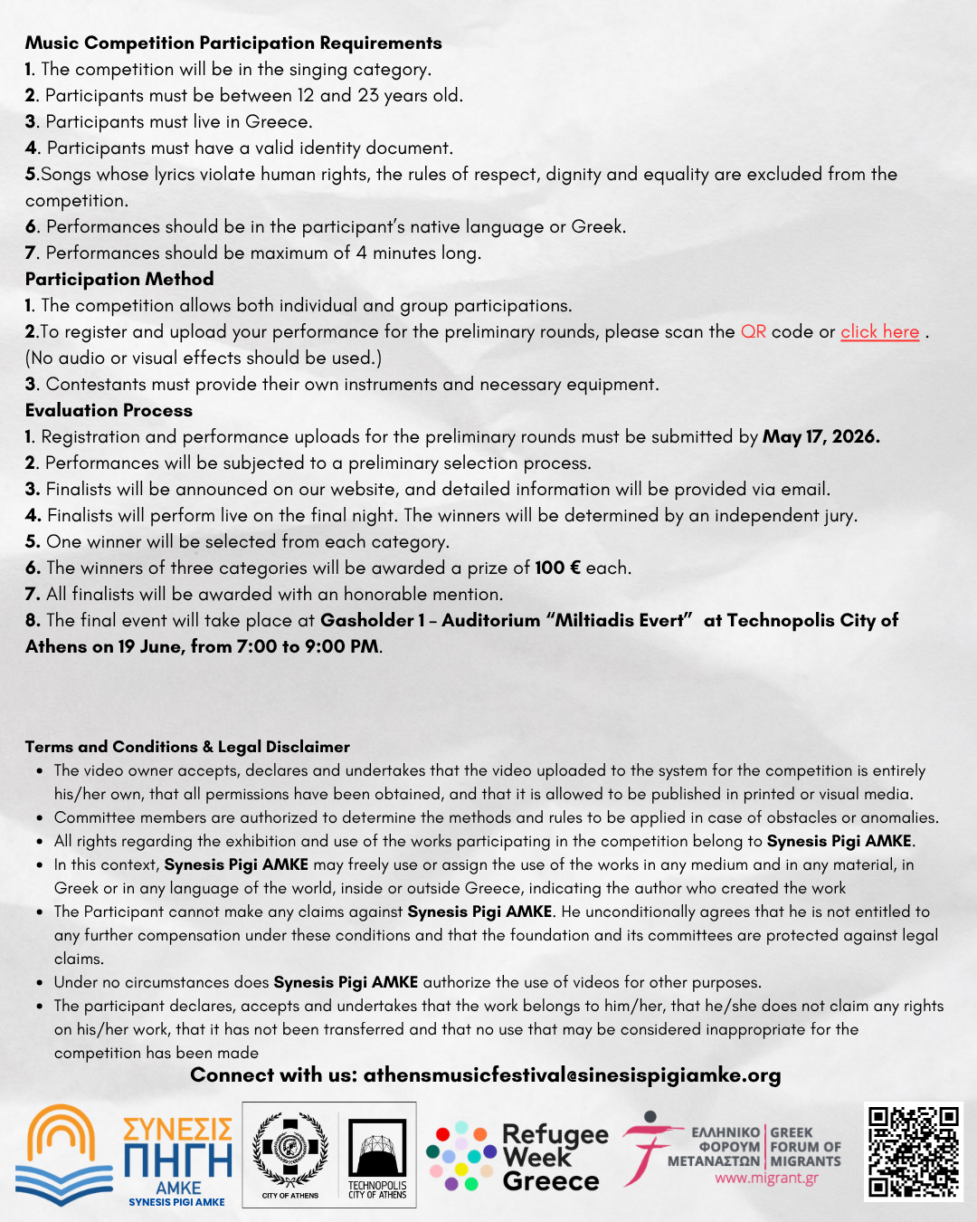 - To register and upload your performance for the preliminary rounds, please scan the QR code or click here